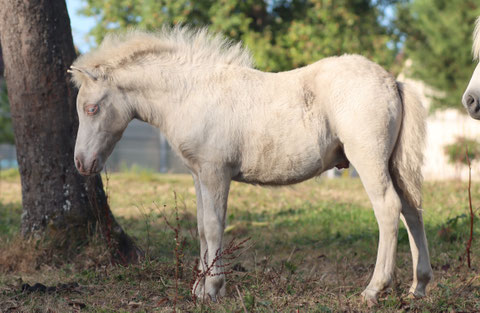 Standard, crémello, perlino ou smoky cream (dun? roan? mushroom? gris ?), test en cours.
