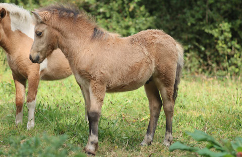 Etalon shetland alezan dun homozygote dun 106,5 cms.